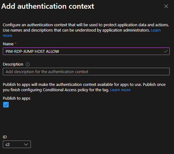 Go to Protection > Conditional Access > Authentication Contexts > New Authentication Context