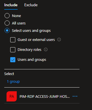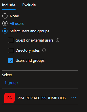 As we did the previous Conditional Access policy, this will be assigned to the same user group we created for PIM.