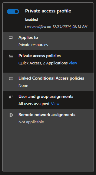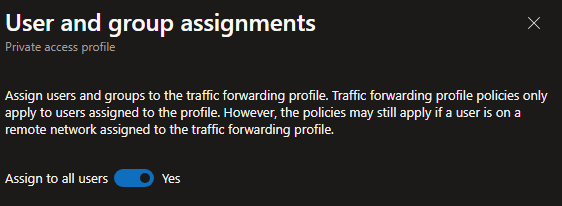 This is the 1st step towards enabling Entra Private Access. The eligible users/ user groups should be in the profile to get the traffic profiles enabled and the Global Secure Access client activated.