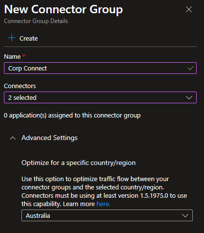 If you have more than one connector, create a connector group for high availability as they will be in the same region.