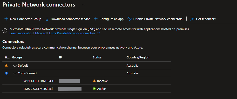 These lightweight connectors establish a secure communication channel between your on-premises network and Azure. It is recommended to create at least 2 connectors for high availability. Further, Microsoft Entra Private Network provides single sign-on (SSO) and secure remote access for web applications hosted on-premises.