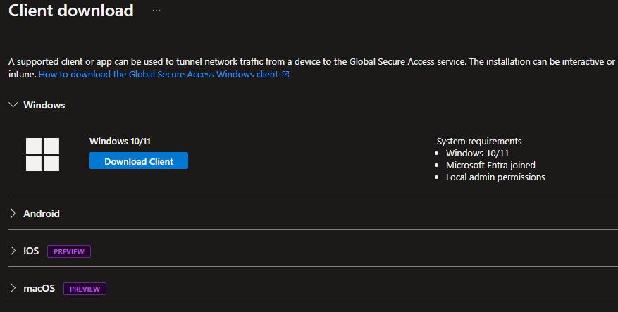Download the appropriate client. You can use Microsoft Intune to install the app on the endpoints.