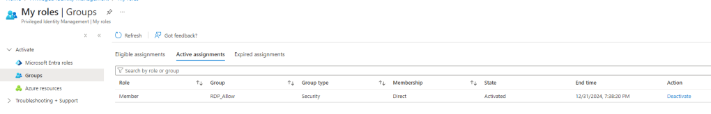 Users will be able to access the Jump Host during the time window configured in the PIM group and need to re-elevate access when initial access expires.