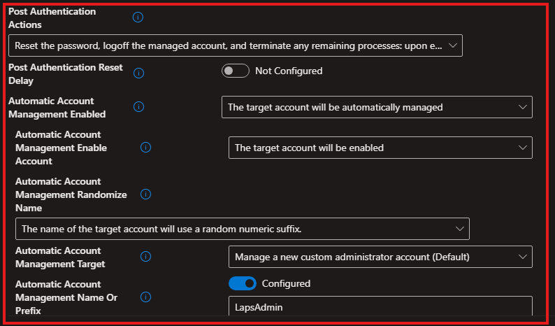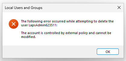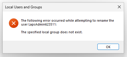 Local Admin Password Solution has come a long way and the March 2025 Update (Service release 2503) had some good enhancements for the solution. Randomizing the LAPS username is one of them. Rather than enabling the local Administrator account or creating a special admin account for LAPS, having an auto randomizing username sounds confusing to an advisory.