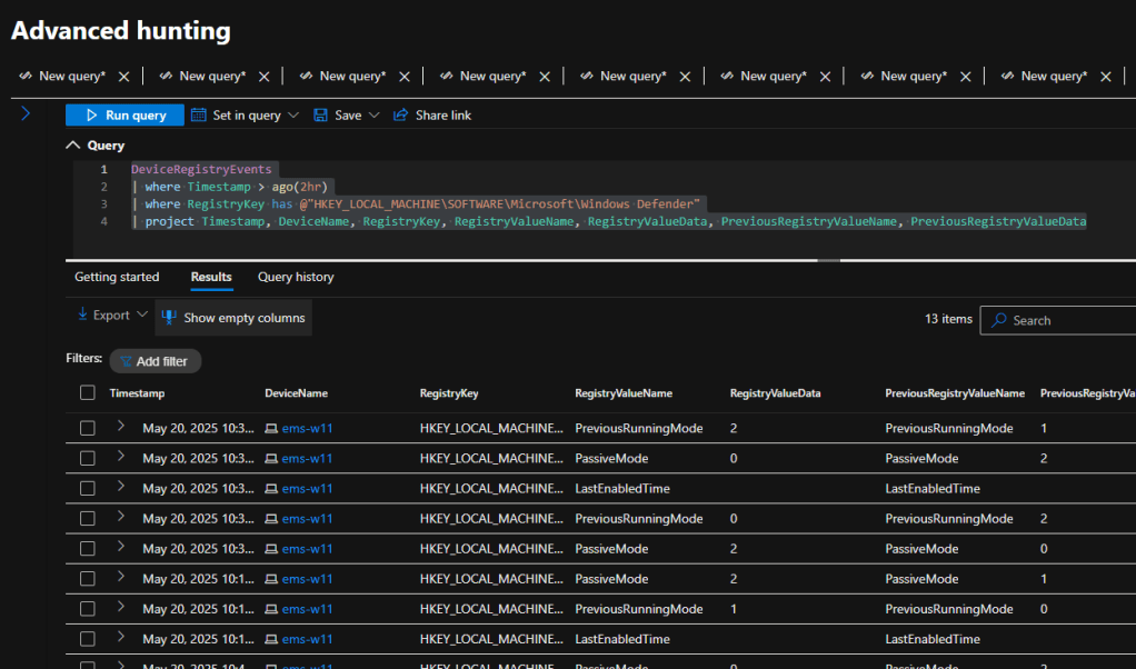 But unfortunately, I can’t track this in Advanced Hunting as it didn’t give any results.
