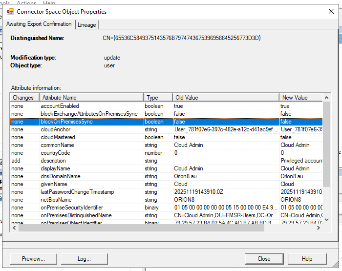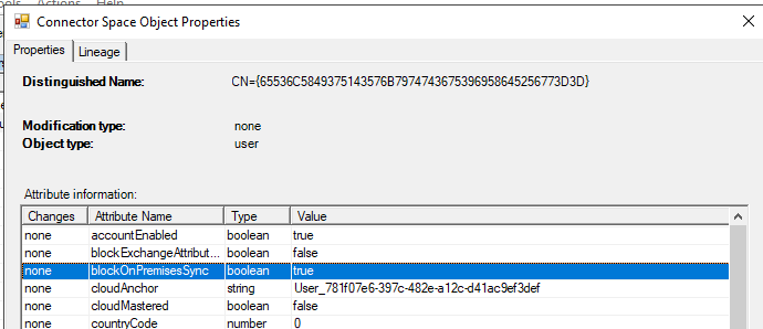 In there, blockOnPremisesSync is set to true now. With this flag set to true, Entra Connect Sync will not sync this account any longer and SOA has successfully changed to Entra ID.