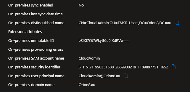 If you check the Entra account for this user now, On-premises sync enabled has been set to No with this change.