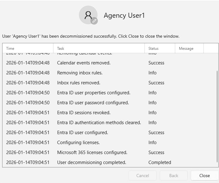 User Decommissioning is important because stale accounts can be a threat to the security as well it can imply bad user account lifecycle with access to resources, active mailboxes with access to other mailboxes in most cases and active licenses.