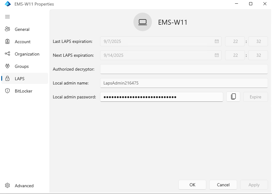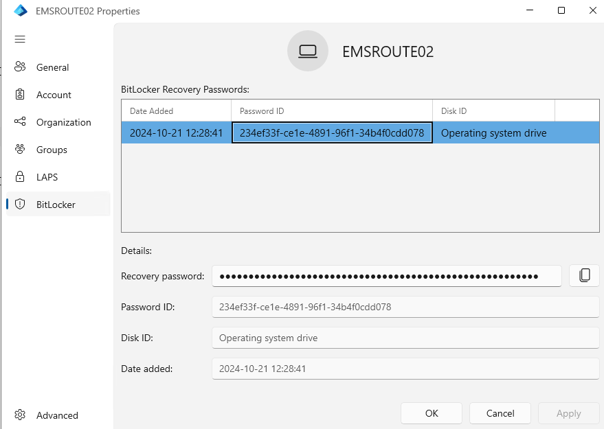 Same as Windows LAPS, when you have configured BitLocker, the information can be easily retrieved with EasyEntra.