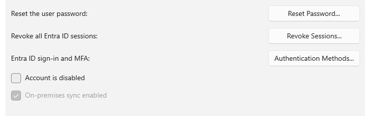 Revoking MFA sessions, understanding user authentication methods and configuring add/ remove methods or resetting MFA can be easily done in the same user account properties section. This can save you time while understanding things like last password changed in troubleshooting scenarios.